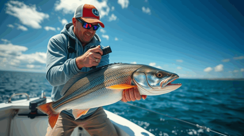 • Experiment with Angles: Shooting from a low angle can emphasize the size of your catch, while overhead shots can capture the full scene on your boat.
